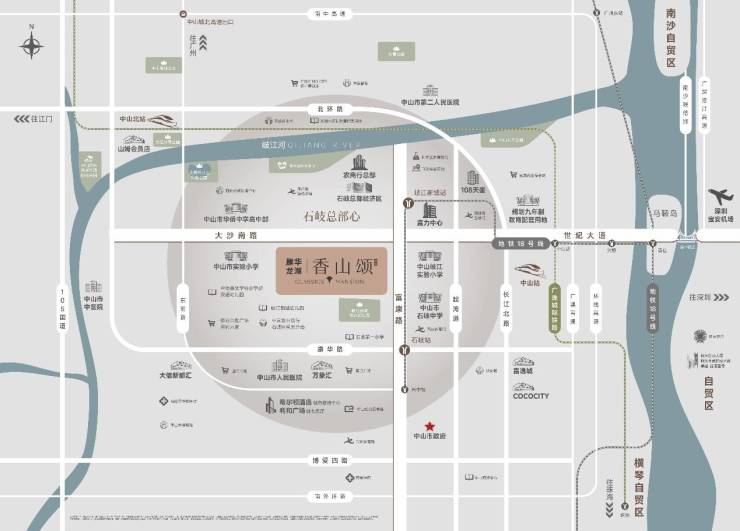 建华龙湖·香山颂雄踞石岐总部心,以强中心战略锚定岐江新城展开主轴,擎动区域千亿级出资规划,坐拥约3km鎏金日子圈。