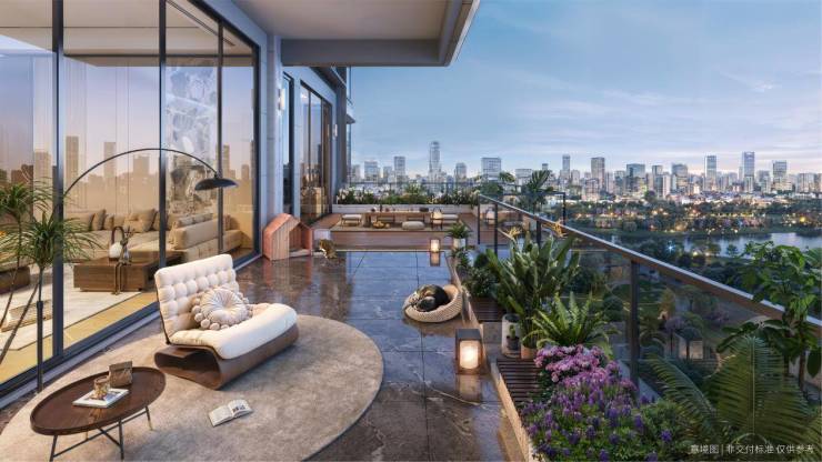 中山首席空中院子,楼栋平行摆放,户户朝南; 对称式修建排布,构成天然的冷巷,通风降温; 城央可贵2.0低密度洋房社区, 调配LOW-E玻璃晶钻幕墙,通透灵动,约0.38墅级窗地比,270°无柱转角飘窗,打造中山“空中院墅”地标。